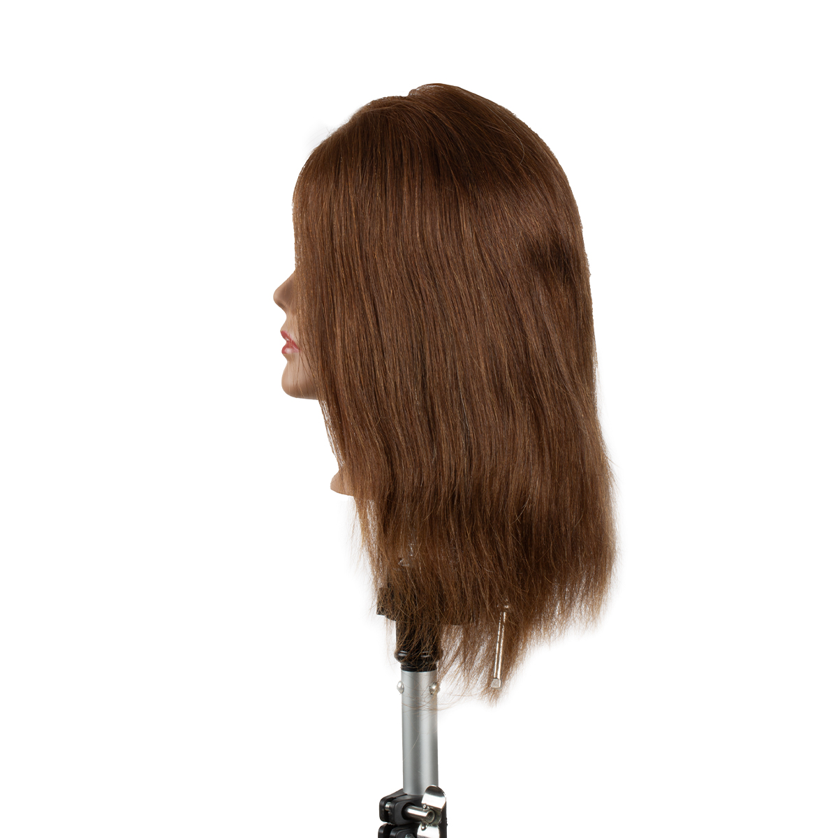 Pametna profesionalna glava za vježbanje s pravom smeđom kosom. Profesionalna glava za vježbanje sa 100% prirodnom indijskom kosom, idealna za šišanje, stiliziranje i bojanje. Duljina kose: 35 cm, visoka gustoća: 210–240 dlaka/cm² za realistično iskustvo vježbanja. Savršeno za frizerske škole i profesionalne tečajeve.